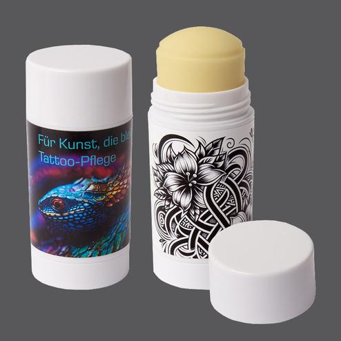 Für den TattooStick wurde eine spezielle, hochwertige Feuchtigkeitspflege entwickelt. Sie unterstützt die strapazierte Haut bei der Regeneration und ist perfekt für die tägliche Pflege. Die vegane, naturkosmetik-konforme Rezeptur enthält:
