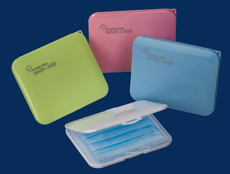 Das antibakterielle MaskCase oblong ist die kleinste der 4 Boxen, hat ein längliches Format mit den Maßen 13,0 x 10,0 x 1,3 cm, wiegt leer nur 38 g und ist in 4 Farben erhältlich: weiß, pink, pastellblau, pastellgrün.