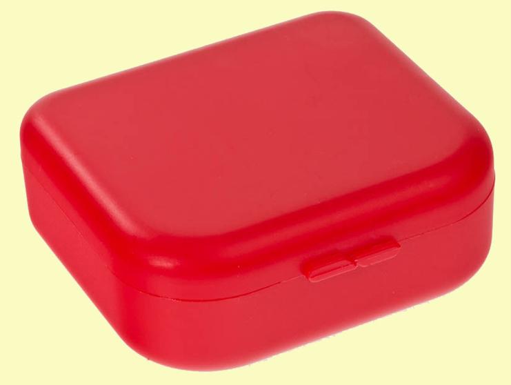 Im Boden sind einige Luftlöcher. Als „Erstausstattung“ lassen sich diese aufklappbaren Zahnspangenboxen z.B. mit den gesunden und leckeren Xylitol-Dentalkaugummis bestücken, welche es in 6 Geschmacksrichtungen gibt.