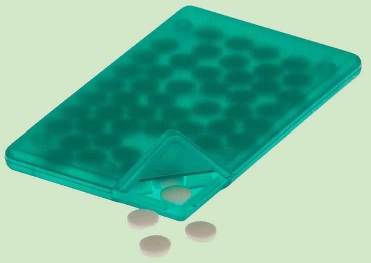 Mit der 14 g leichten PeppermintCard haben Sie 50 x Frische zur Hand und können diese mit anderen teilen. Die „Knick-Ecke“ ermöglicht es Ihnen mal so richtig „spendabel“ zu sein …!