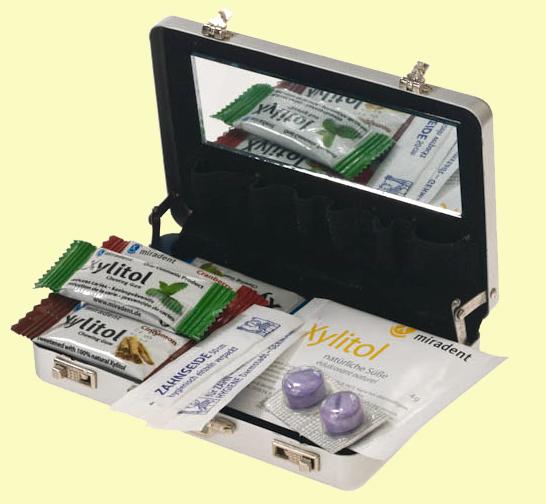 Selbstverständlich können Sie den AluDentalKoffer auch ohne Werbung erwerben. Ein Einlegeblatt ist nicht erforderlich, da die meisten Dentalprodukte nicht kennzeichnungspflichtig sind. Bei den Dentalkaugummis sind die gesetzlich vorgeschriebenen Angaben auf die Siegelfolie eingedruckt.