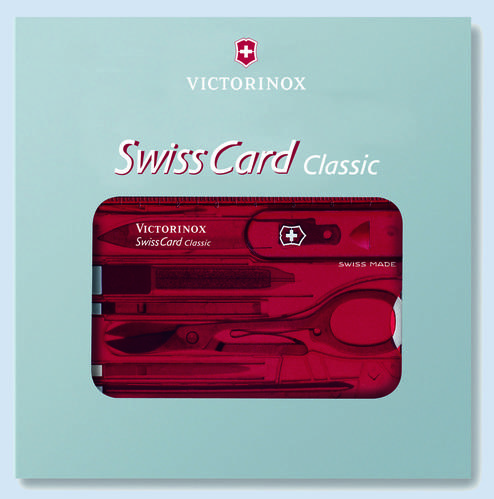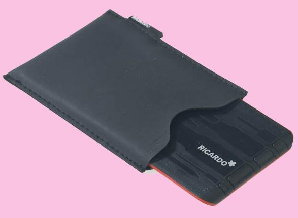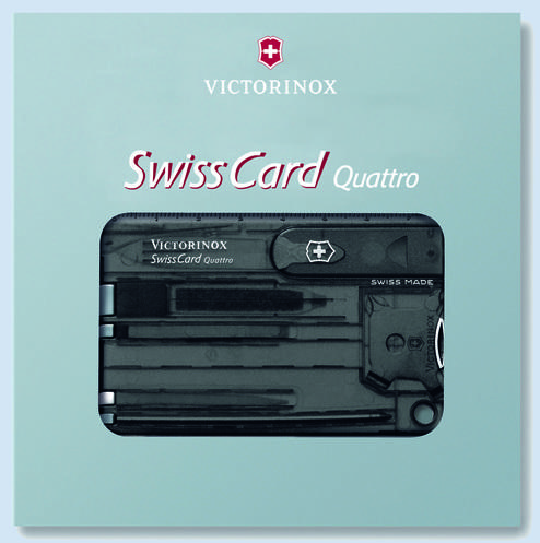 - eine schwarze Lederhülle zum Einschieben der Werkzeugkarte und zusätzlich verpackt in einer bedruckten Faltschachtel