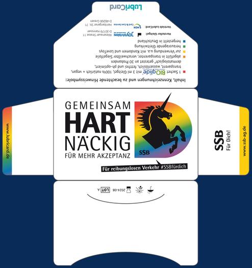 Die einsteckbare Rückseite und ein Teil der Außenseite sind reserviert für die gesetzlichen Angaben, die zwingend auf die Außenverpackung eingedruckt werden müssen und vom HGH Card & Care Service vorgenommen werden: