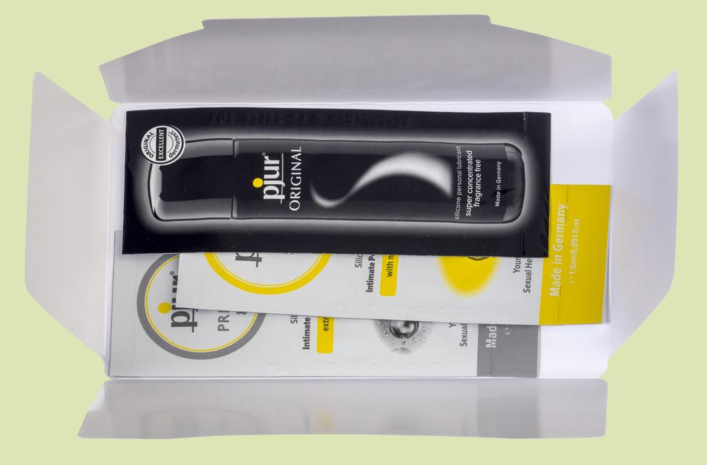 - oder mehrere längliche Sachets von PJUR, welche einfach eingelegt werden.