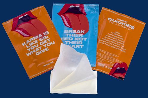 Die Sachets ohne Zackenrand (aber mit 2 „knackigen“ Sprüchen zur Auswahl) und einer Öffnungskerbe haben folgende Eigenschaften: