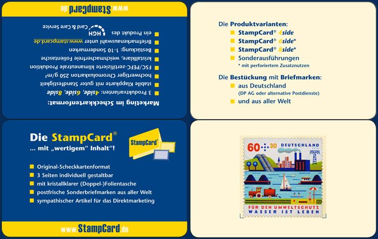 Die scheckkartengroße StampCard - ein Produkt des HGH Card & Care Service - bietet hier vielfältige Einsatzmöglichkeiten für neue Wege im Dialog mit Ihrer Zielgruppe. Sie ist ein individuell gestaltbares Werbemittel mit postfrischen Briefmarken.