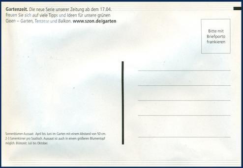 Ob Baumarkt oder Tourismusregion, ob Genossenschaft oder Saathersteller, ob Kircheneinrichtung oder Stiftung - die gefüllte Saatpostkarte mit laborgetestetem Saatgut erreicht mit Sicherheit die entsprechende Zielgruppe.