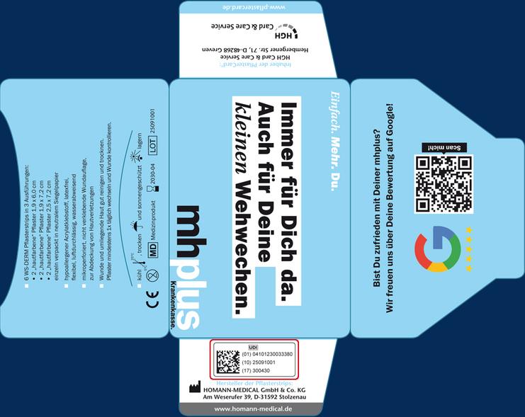 Die Wertigkeit der Karten richtet sich nicht zuletzt nach den von Ihnen gewünschten Veredlungsvarianten sowie dem ausgewählten Inhalt. Ein Pflaster ist ein medizinisches Produkt der Klasse I nach dem Medizinproduktegesetz (MPG) [entsprechend der EU-Richtlinie 93/42 EWG (MDD)]. Der HGH Card & Care Service nimmt das sehr ernst. Daher werden folgende Angaben auf jede PflasterCard® gedruckt: