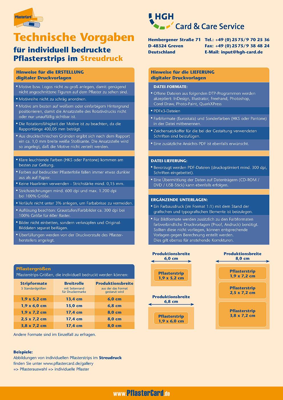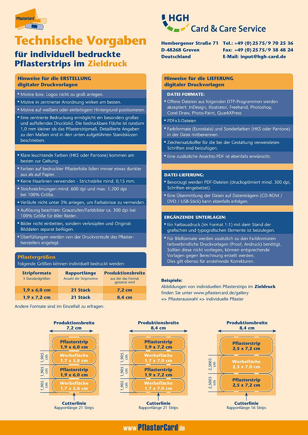 Technische Vorgaben - Pflasterstrips "Zieldruck"