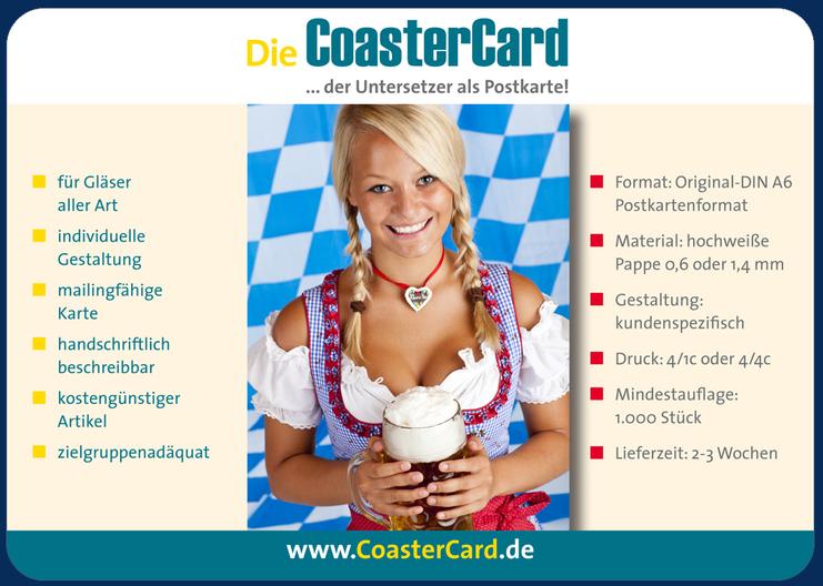 Mit der CoasterCard 14fourteen bietet der HGH Card & Care Service eine nicht ganz alltägliche Postkarte an, die bei allen Beteiligten sicherlich in guter Erinnerung bleiben wird. Die Karte hat eine Stärke von 1,4 mm und entspricht somit der Haptik eines „normalen“ Bierdeckels. Preislich ist diese rustikale Variante etwas günstiger. Jedoch kommt als Material auch hier ein hochweißer Spezialkarton mit hervorragender Bedruckbarkeit und starker Saugfähigkeit zum Einsatz.
