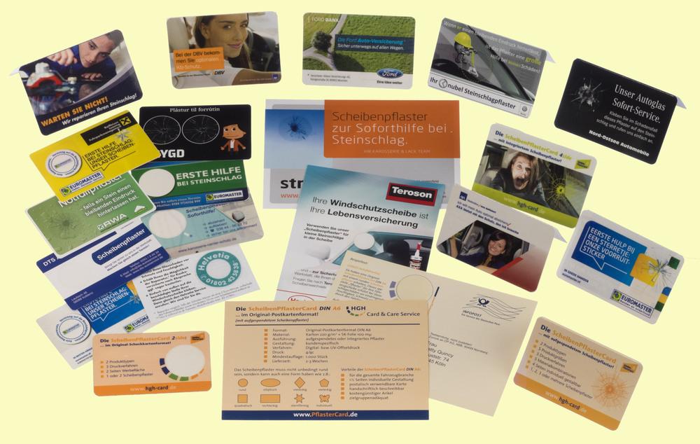 Der HGH Card & Care Service bietet verschiedene Produktvarianten rund um die ScheibenPflasterCard in folgenden Ausführungen und unterschiedlichen Qualitäten an: