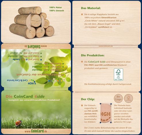 A chip, a token, or a coin - attractive, useful and valuable - an absolute eye-catcher with the right packaging! But only with the right packaging do they really stand out. Because they can be individually customised, the advertisement and image carrier comes in the form of a cool CoinCard! The HGH Card & Care Service offers the product in 7 variations: