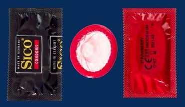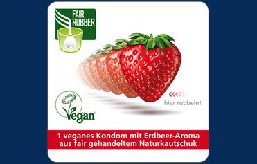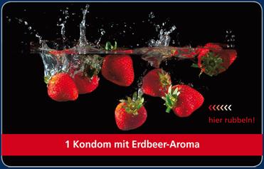 Chromosulfatkarton, Glanzcellophanierung, Erdbeeraroma auf Kondom und CondomCard®.