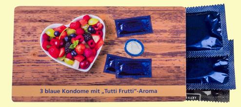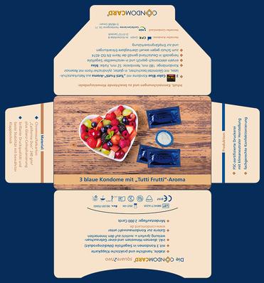 Around 100 mm² of advertising space is available on the generous front side of the rectangular CondomCard® square2two. There are also the two side wings and a fold-in front side which you are free to design. The optimised inner space offers room for 2 or 3 branded condoms (depending on manufacturer).