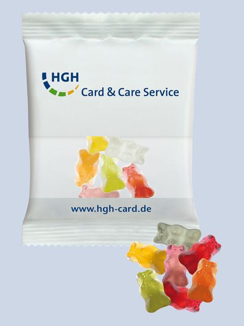 Ein schön gestaltetes Tütchen mit Fruchtgummis ist das klassische Werbeprodukt überhaupt und eignet sich bestens für zahlreiche Werbe- und Marketingmaßnahmen sowie Messen und Events.