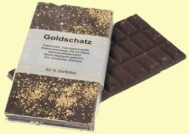 | Goldschatz | Edelschokolade mit eßbarem 23 Karat Blattgold |