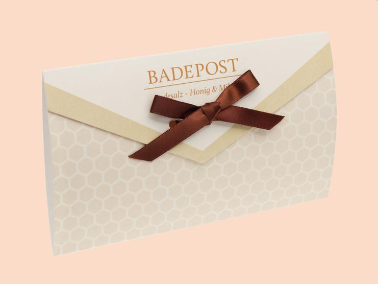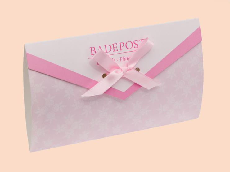 Letzteres bietet der HGH Card & Care Service in Form einer als Brief designten Klappkarte mit textilem Schleifchen unter dem Produktnamen „Badepost“ an. Das in einem Cellophantütchen verpackte Badesalz gibt es in 2 Duftrichtungen: